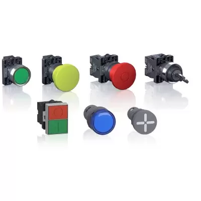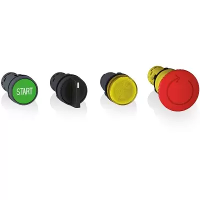 Monoblok yuvarlak plastik çerçeveli butonlar ve sinyal lambaları, Ø 22 mm.